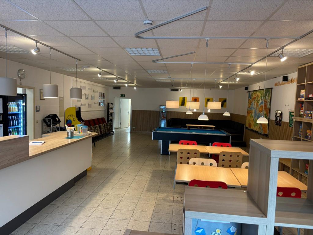 Auf ca. 460 qm im Erdgeschoss und 200 qm im Obergeschoss bietet das neu gestaltete Jugendzentrum Hotti-Altenforst jede Menge Platz und Raum für viele Möglichkeiten, als Kind oder Jugendlicher seine Freizeit zu verbringen.