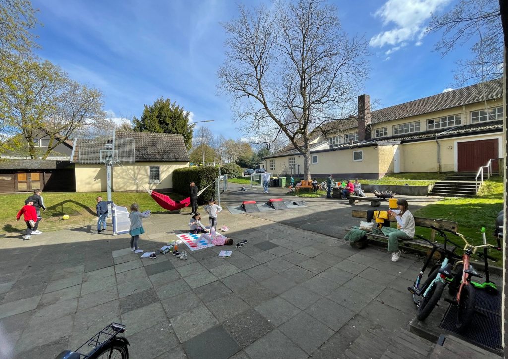 Wer sich richtig auspowern möchte, nutzt unseren Toberaum oder geht nach draußen: Unser großes Außengelände mit Rampen, BMX-Rädern, Basketballkorb sowie Hof und Garten mit Hochbeet lädt zu Bewegung, Begegnung und kreativen Aktionen ein.