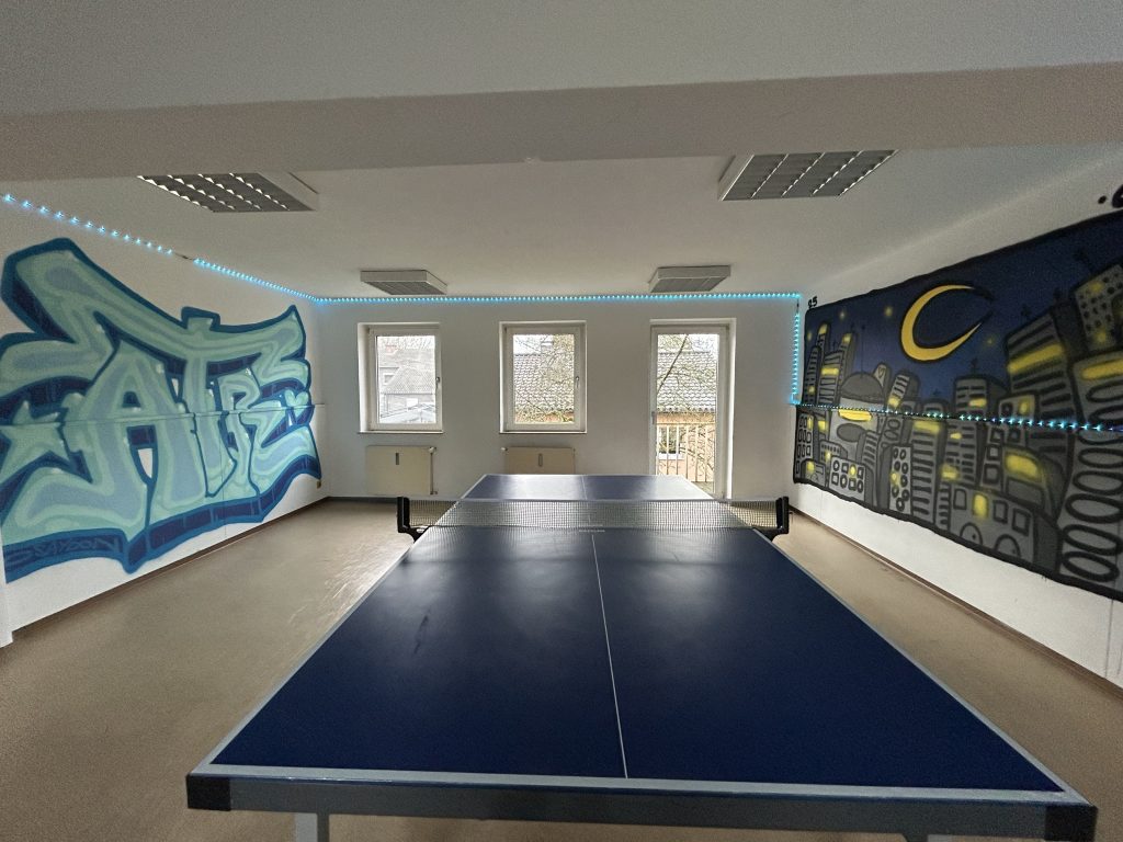Als Offene Tür für alle Kinder und Jugendlichen ab der 1. Klasse bieten wir auf zwei Etagen zahlreiche Möglichkeiten zum Spielen, Entspannen, Ausprobieren und Mitgestalten. Ob Billard, Dart oder Kicker, XBOX-Spielen auf der Leinwand, Tischtennis, Gesellschaftsspiele oder einfach gemütlich im Chillraum mit Couches, Sesseln und Hängematten abhängen – hier ist für jede und jeden etwas dabei.