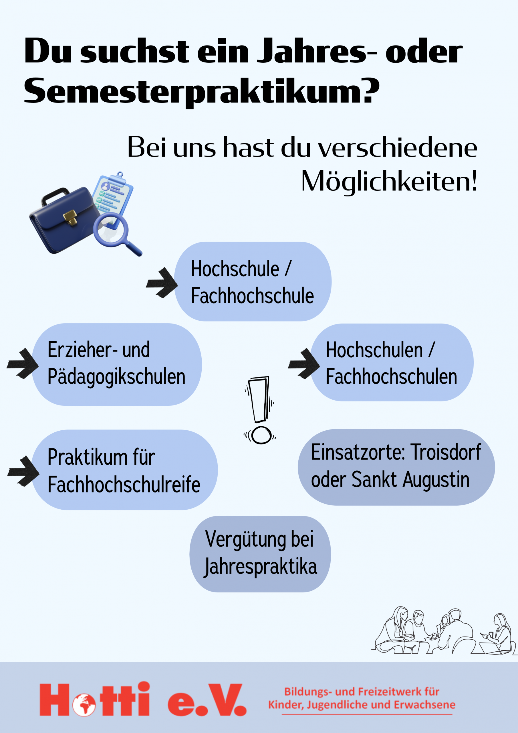 Wir bieten verschiedenste Möglichkeiten ein Jahrespraktikum zu absolvieren, z.B.