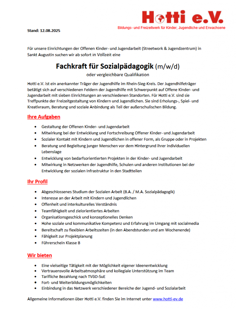 Bewerben kannst Du dich ab sofort über das Formular oder per Mail an: personalverwaltung@hotti-ev.de. Wir freuen uns über Deine Bewerbung!